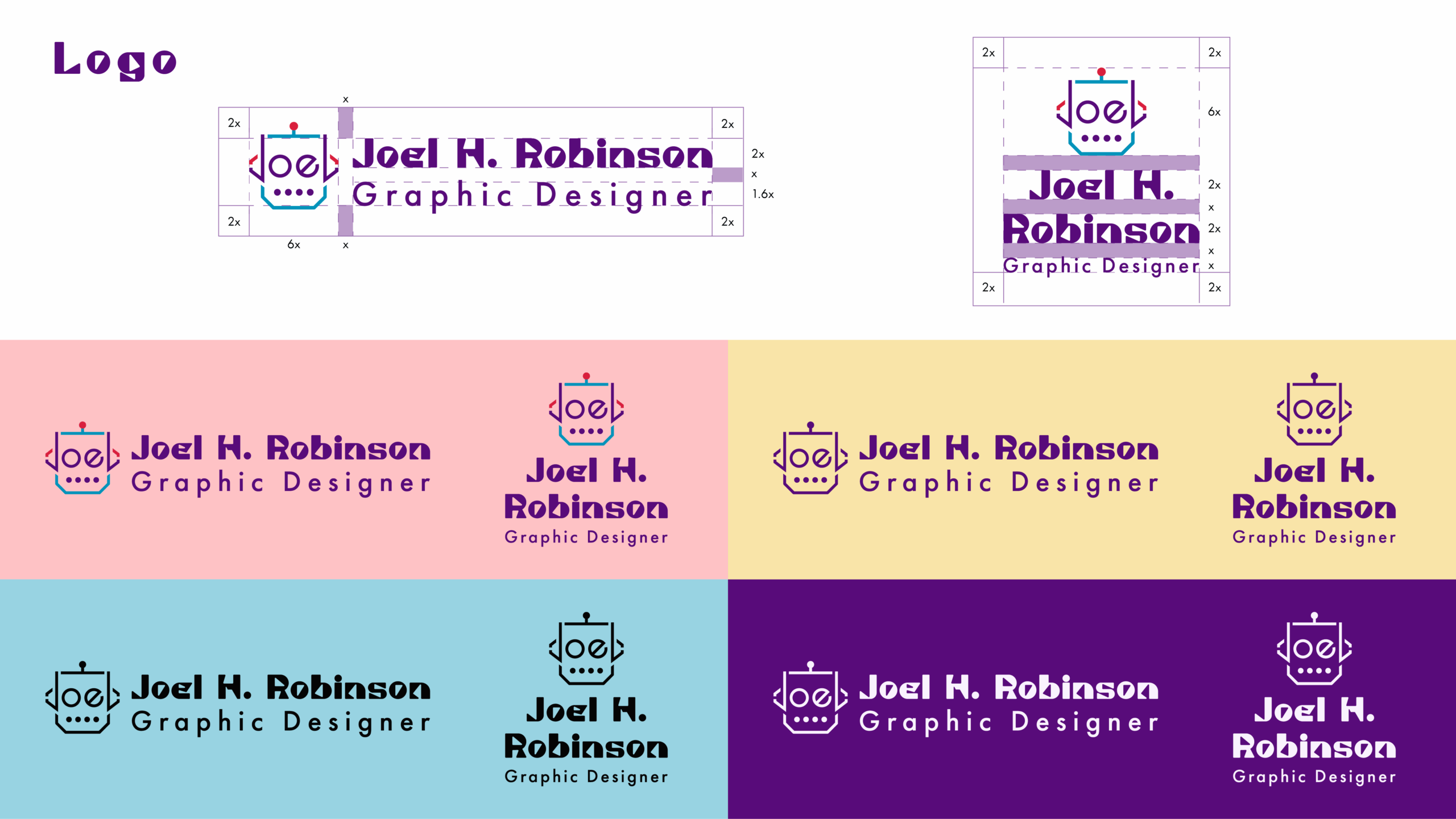 As that progressed, I started to try incorporating my initials or my name into the design, as all my previous logo designs included my initials, and I wanted to pay homage to that. I eventually made some designs the included my name in the head of a robot, and decided to move forward with that as the main logo.