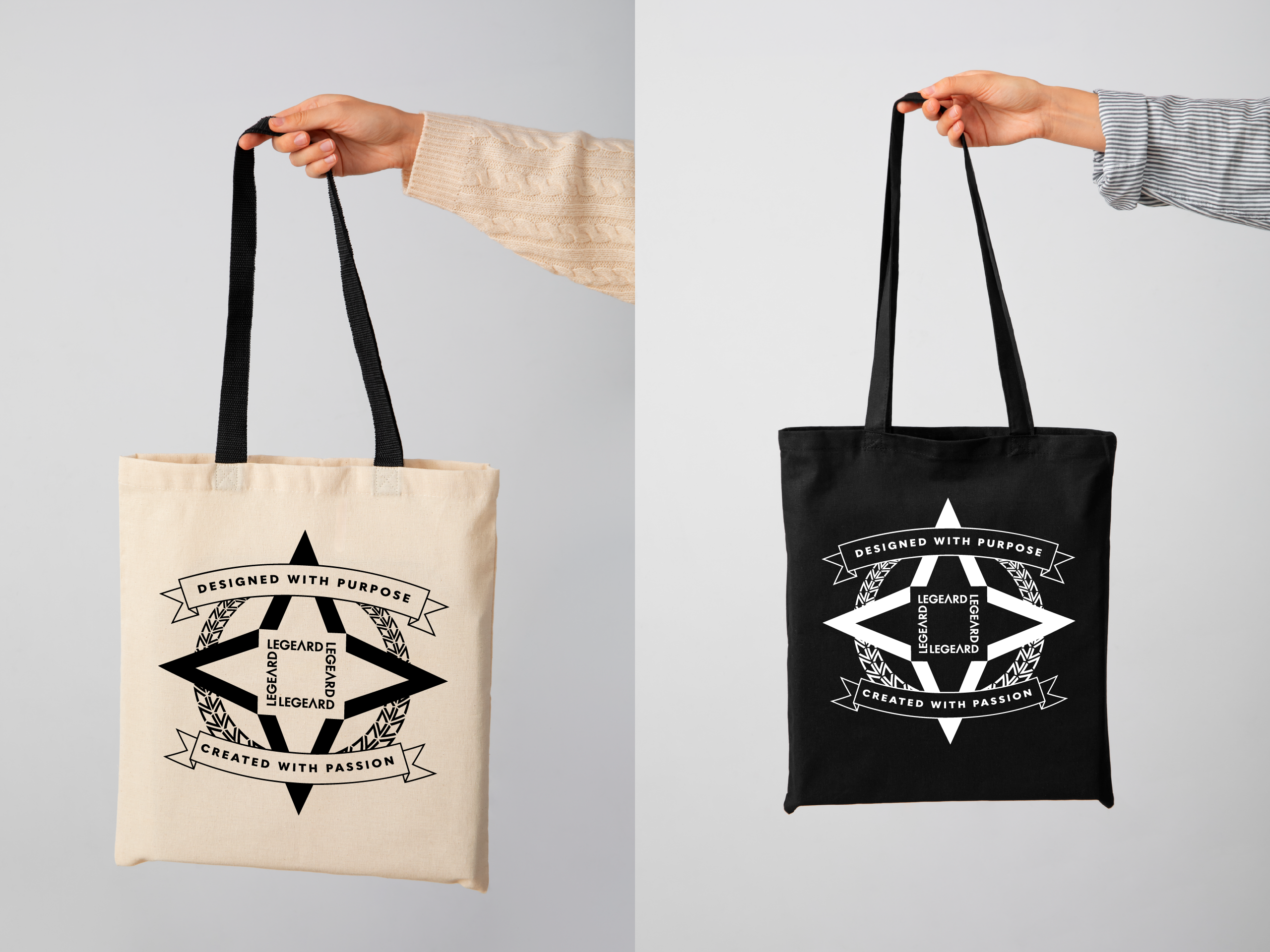 From my first design creating diamonds using two of the logomarks, I discovered if I put two of those diamonds together and then repeated it, I could create a version of a classic laurel. This lead to me creating an alternative of my favorite design, moving the outer “Legeard” square to the center, and using the laurel and a banner with a tagline to encapsulate everything. This design was a bit of a step away from the streetwear style, but I felt it still held merit.